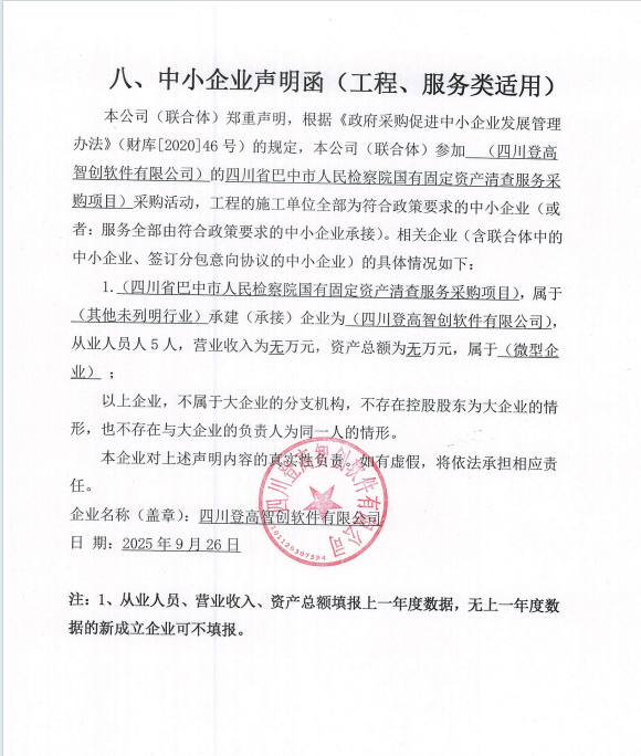 4.中标、成交供应商为中小企业的,应公告其《中小企业声明函》 | |||